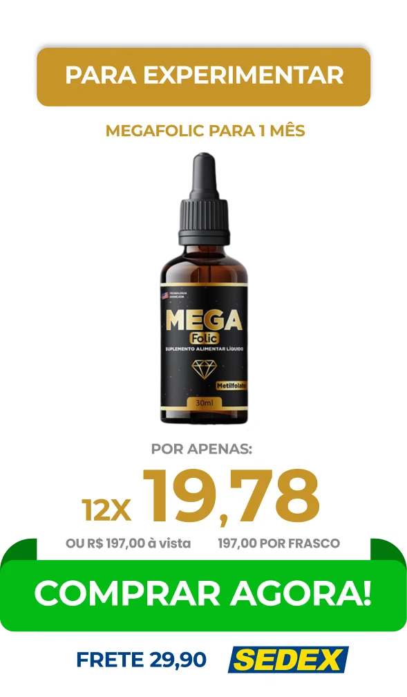 O Mega Folic tem como principal composto o Metilfolato (B9 - Ácido Fólico) ele é o ÚNICO composto da família de vitaminas b9 que não altera no organismo quando tomado com outras medicação (hipertensão, diabete, tireoide, controlados). Atua no escurecimento do cabelo e juntamente com a vitamina B6 e vitamina b12.